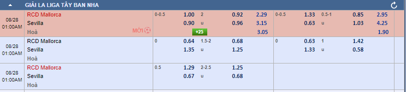 Nhận định, soi kèo Mallorca vs Sevilla 00h00 ngày 28/08/2024 La Liga
